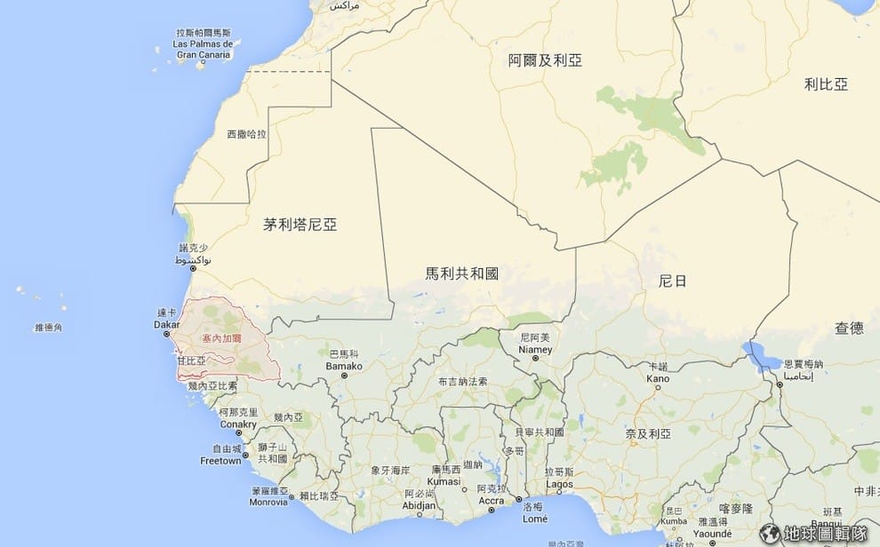 圖中紅色區域就是位於西非的塞內加爾,台灣在 2005年與其斷交。