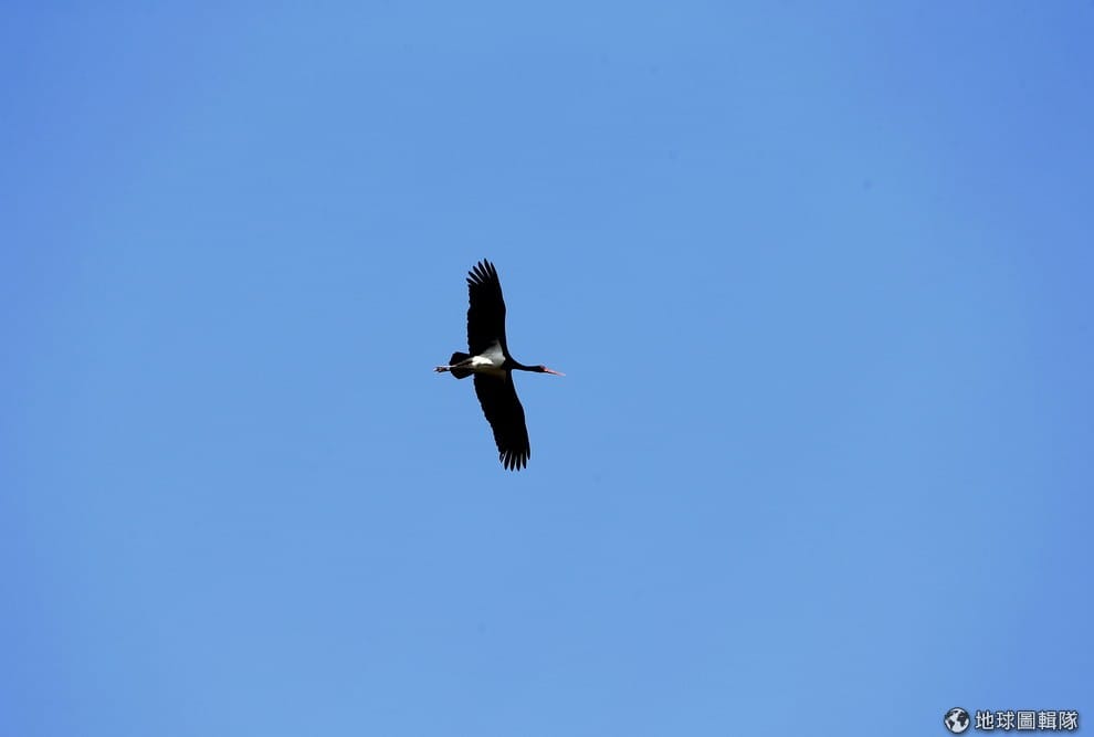 路透社白羅斯德朗基(Dronki)當地,黑鸛在藍天展翅。