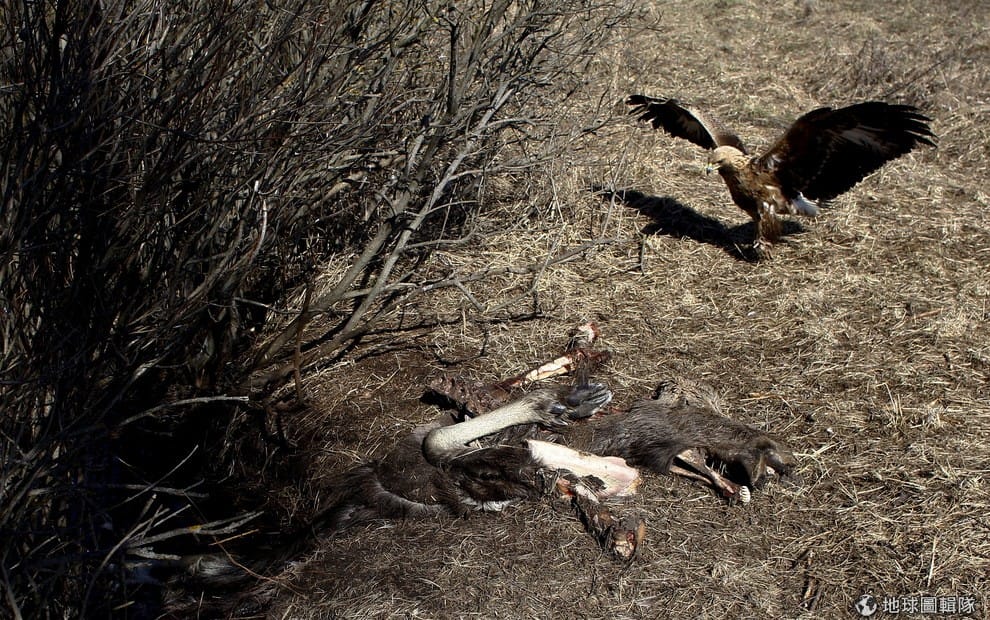 路透社金鵰小心翼翼靠近鹿的屍體。過去談到台灣與老鷹關係的文章中,曾提到猛禽在大自然的食物鏈裡扮演著高級消費者的角色,數量雖然不多,但是卻能有效控制小動物的族群量,在生態系中佔有重要地位。
