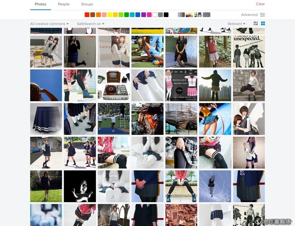 制服裙經過社會印象和媒體渲染,成了一個乘載諸多想像的存在,且多半不脫一些性意味在其中,如上圖是在Flickr搜尋制服裙的結果,可以發現網友上傳的相關照片百百種。