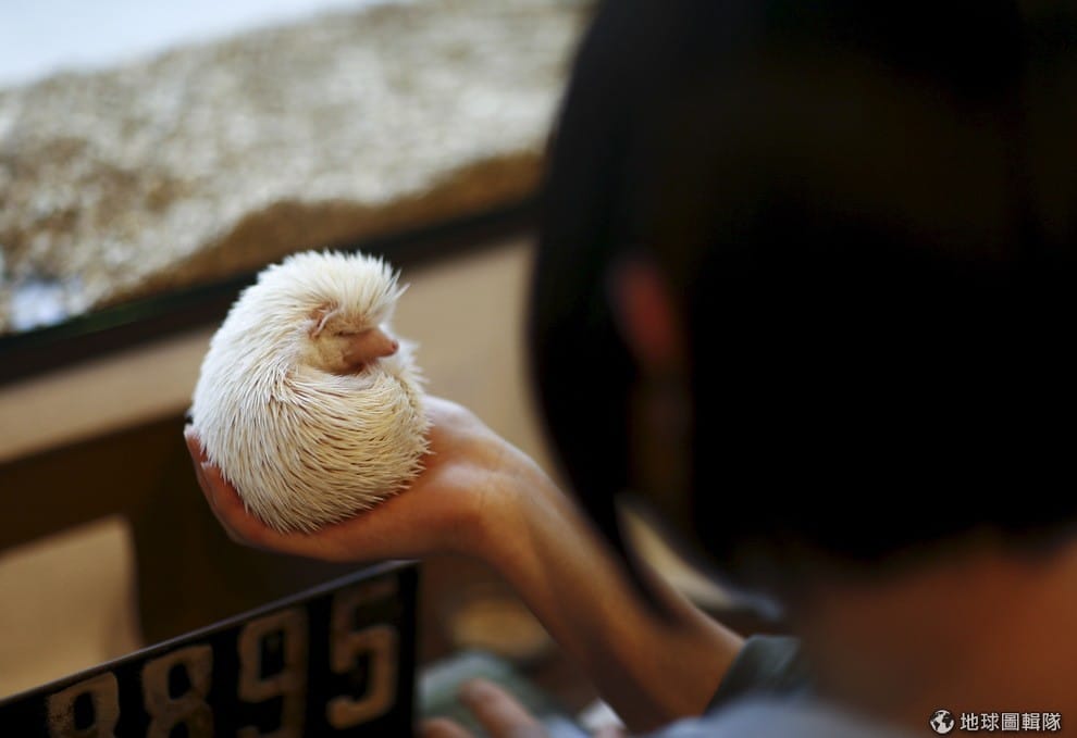 路透社白色刺蝟縮在一名女性的手上睡覺。