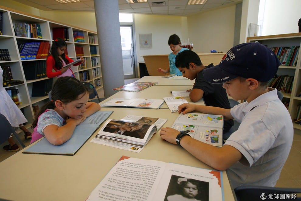 圖書館裡,阿拉伯裔和猶太裔小孩正在讀書。