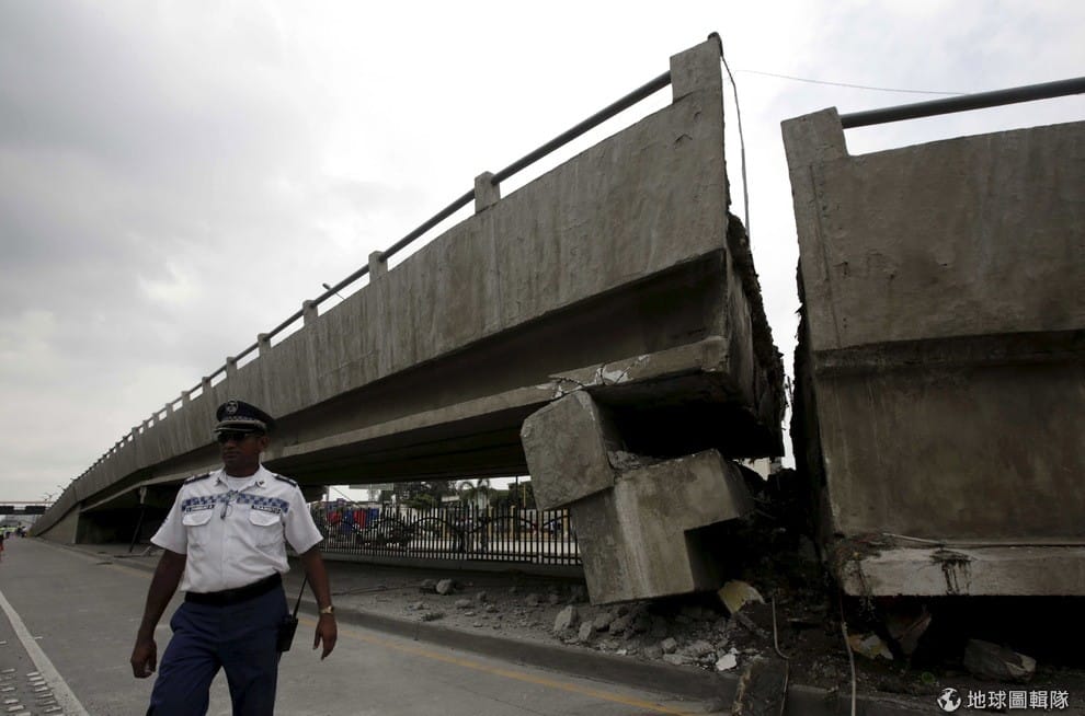 瓜亞基爾市內建物遭強震震毀。