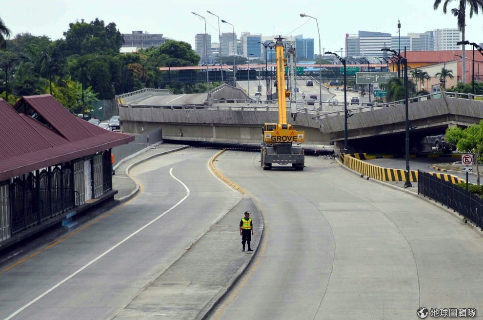 地震將橋樑震毀,許多城市主要交通一時癱瘓。