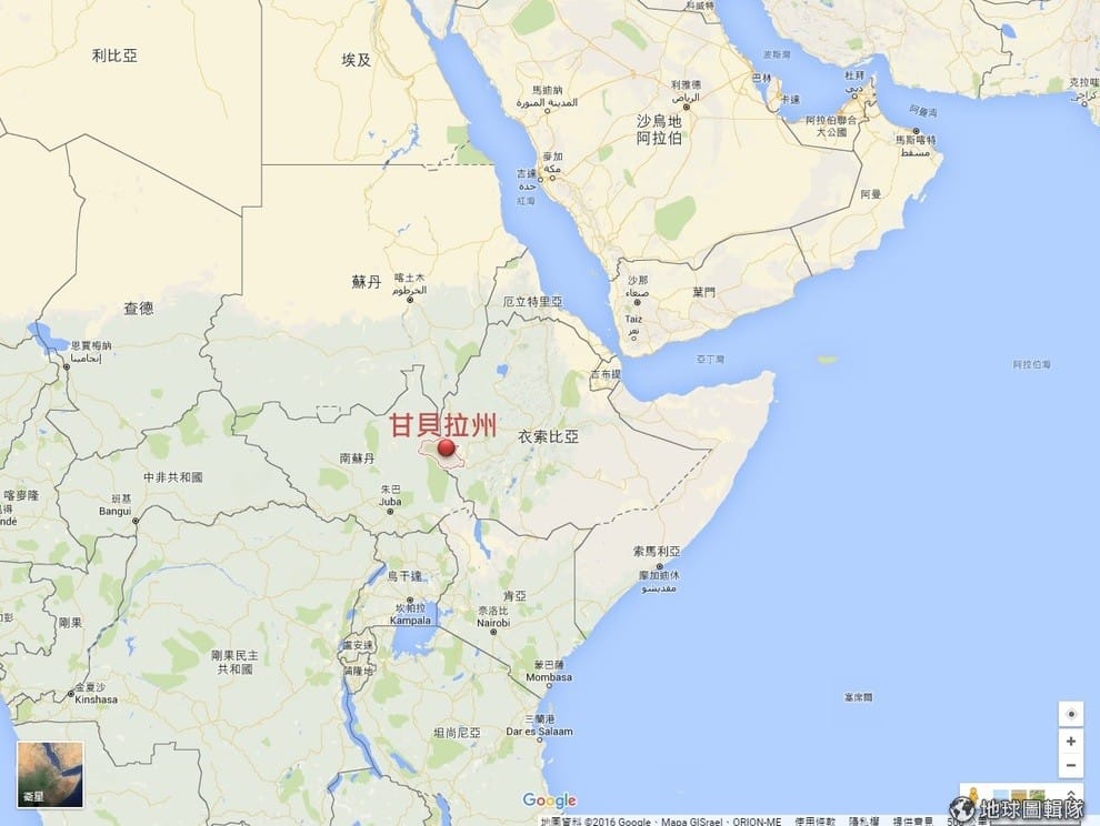 路透社圖中緊鄰南蘇丹的紅色區域是衣索比亞的干貝拉州,也是這次甘貝拉大屠殺發生的地點。
