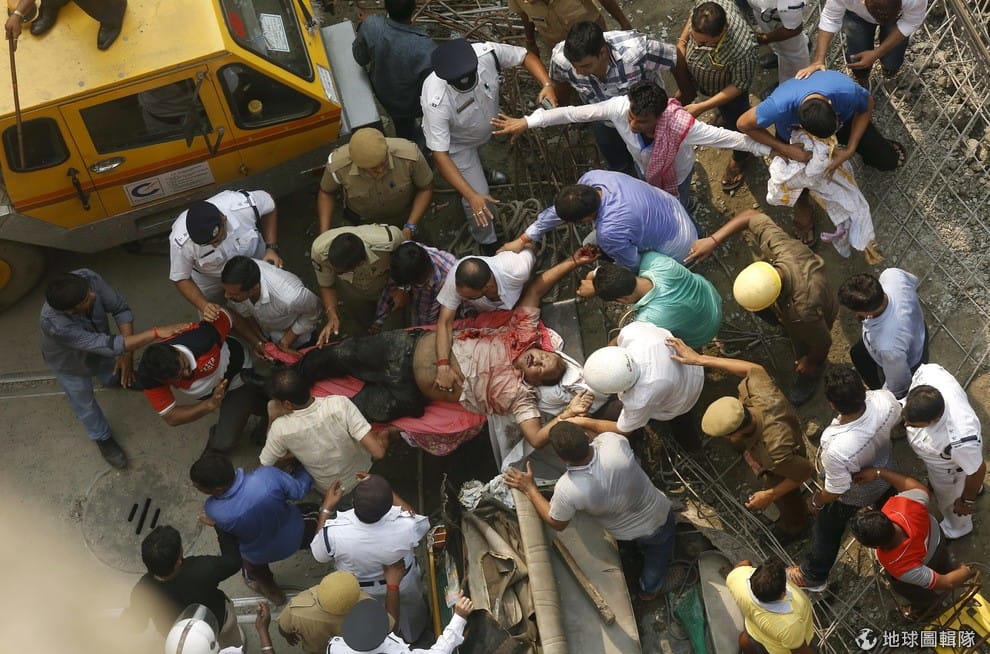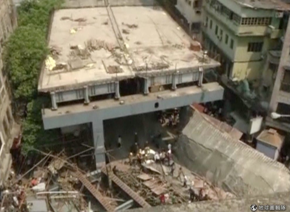 加爾各答市區內一片混亂,位在鬧區正在興建的高架橋突然倒塌,事件引發相當大關注。