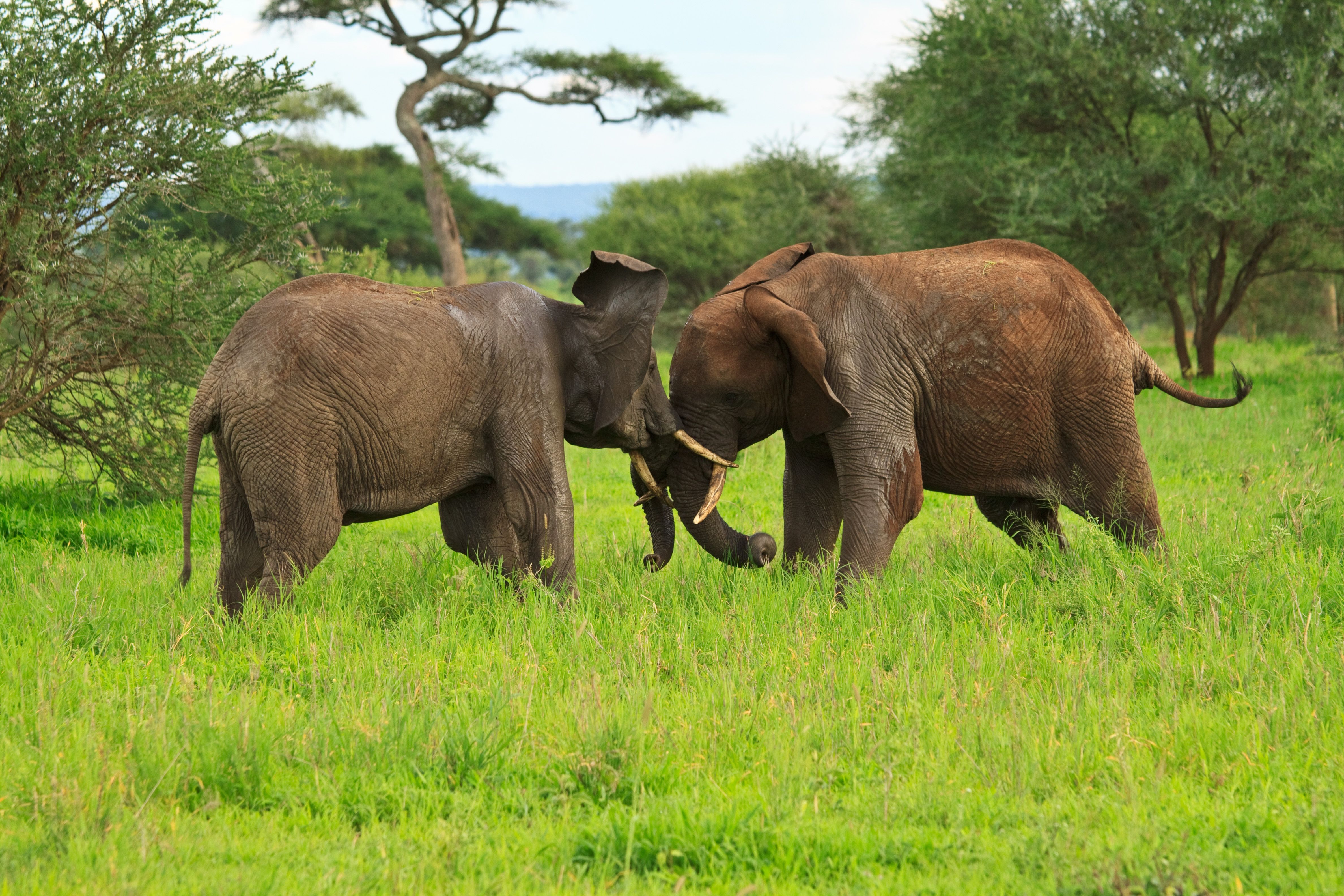 網友flickrfavorites兩隻野象互相較勁的畫面被攝影師拍了下來。大象的野性不會隨著豢養而消失,長年受壓迫容易獸性大發。