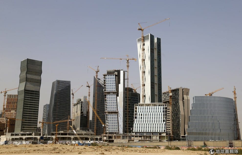 圖為沙國首都利雅德的阿布杜拉國王金融區,該區目前由沙烏地賓拉登集團負責,可以看到整個區域尚未完工。
