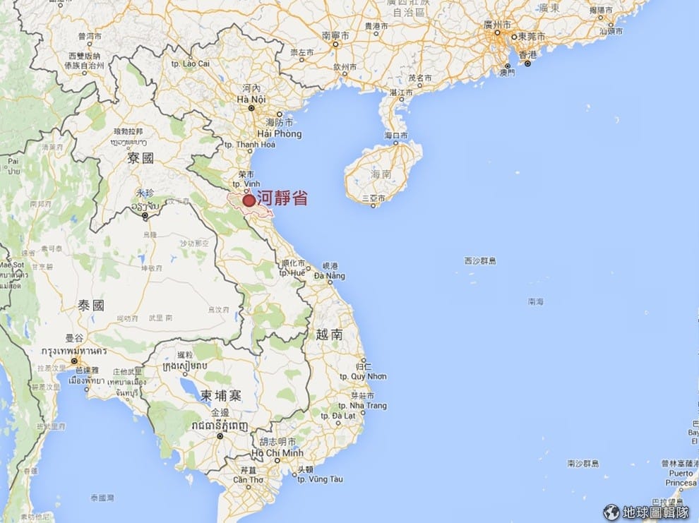 圖中紅色區域是越南河靜省,當地非常依賴漁業。