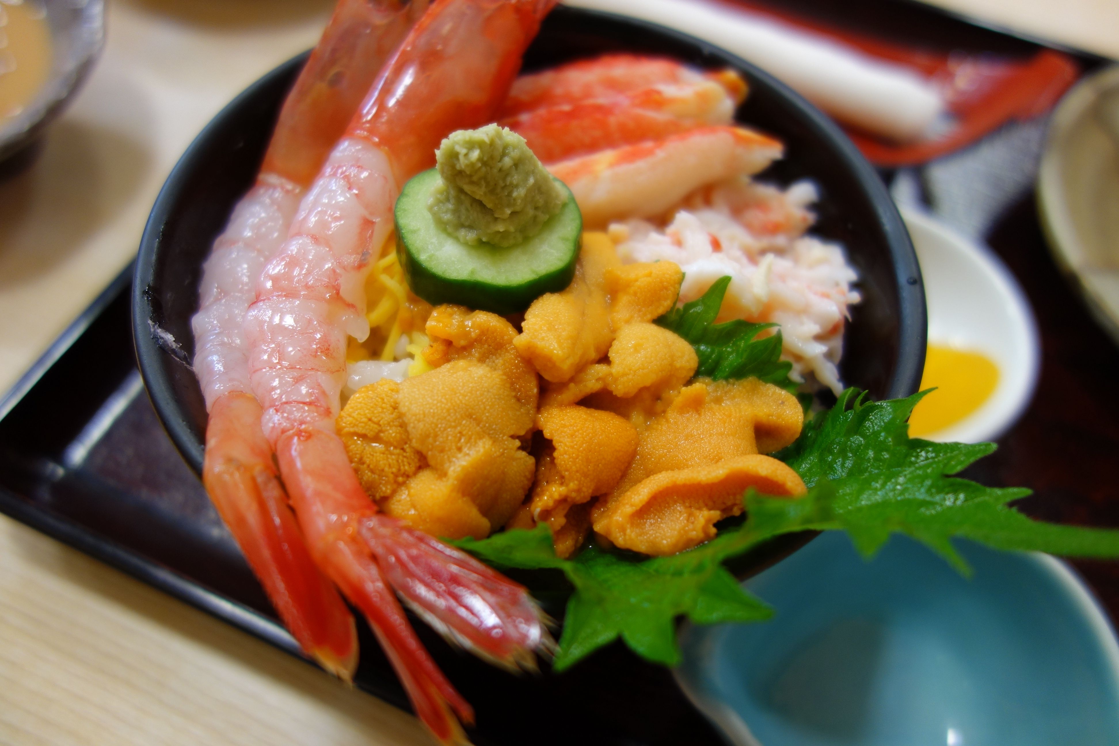 在醋飯上面鋪上海膽與其他海鮮,就是饕客愛吃的海膽丼。