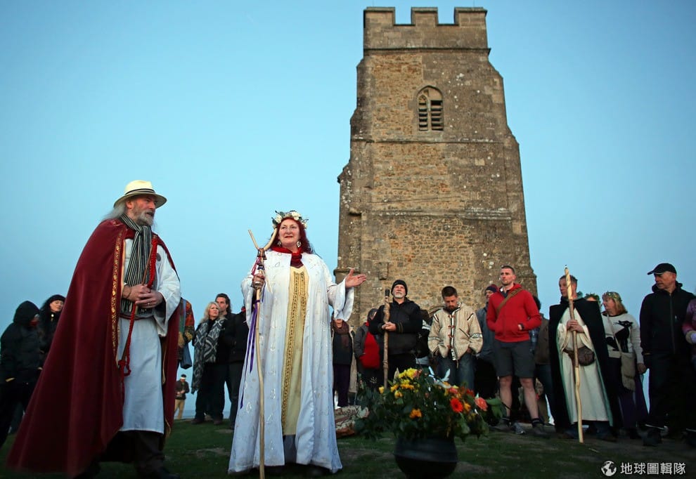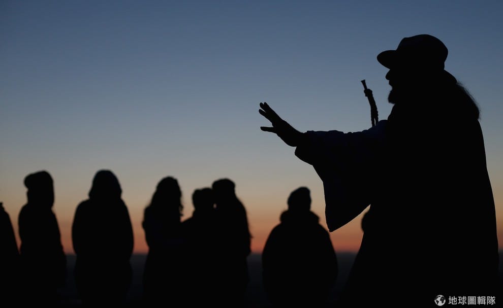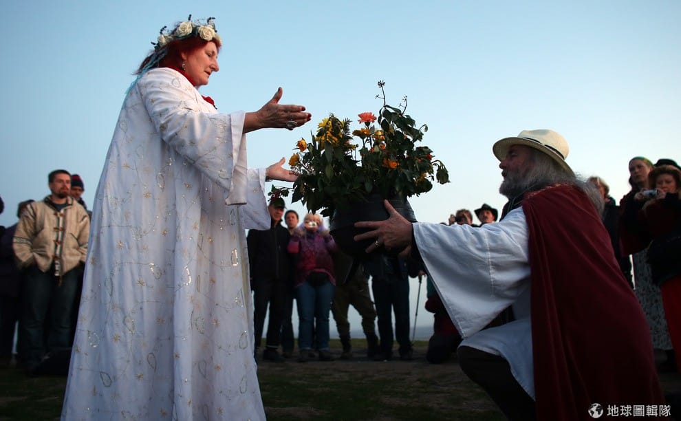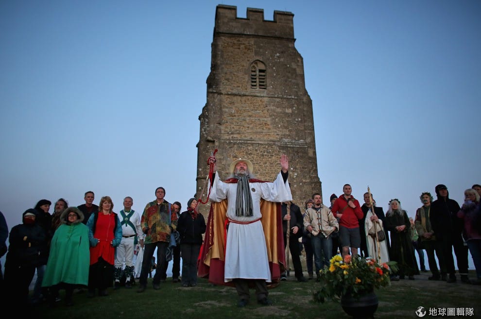 5/1號這天早晨,德魯依教的信眾們齊聚山頭,準備迎接夏天的朝陽。Matt Cardy/Getty Images