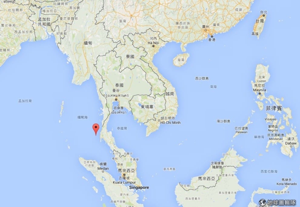 圖中紅色地標處即這次泰國當局宣布無限期關閉的塔才島。