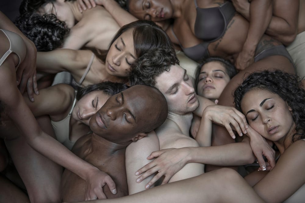每位舞者緊密地鑲嵌彼此,一點空間都不想留下。