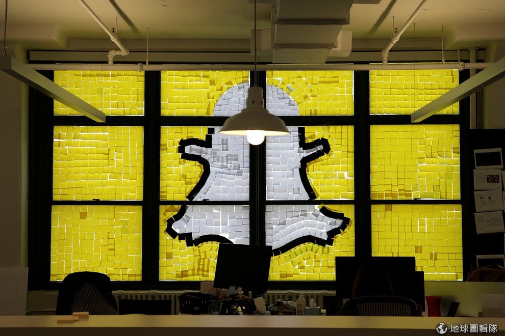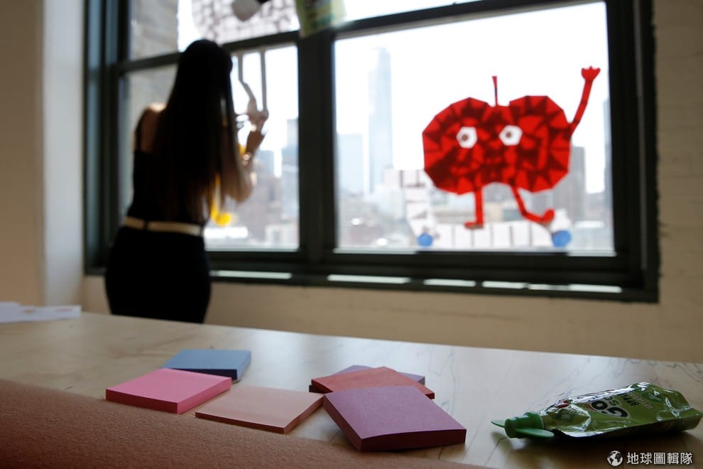 路透社員工在窗戶上,用便利貼貼出Snapchat app的代表圖樣。