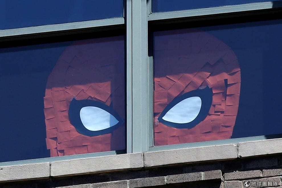 路透社便利貼蜘蛛人從窗戶下方冒出頭來。