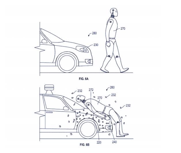 在因撞車而引發的交通事故中,行人遭受的傷害大部分不是由第一次撞擊導致的,而是撞車引起的連鎖反應,其他車輛相撞導致的。Google 無人駕駛汽車團隊研發了一項新的技術來應對這一問題。最新的專利文件顯示,Google 無人駕駛汽車將在車的前端加一層黏合劑,當汽車失控撞向行人時,第一次撞擊後能夠把行人黏在車上,避免行人在慌忙躲閃中遭遇二次撞擊。