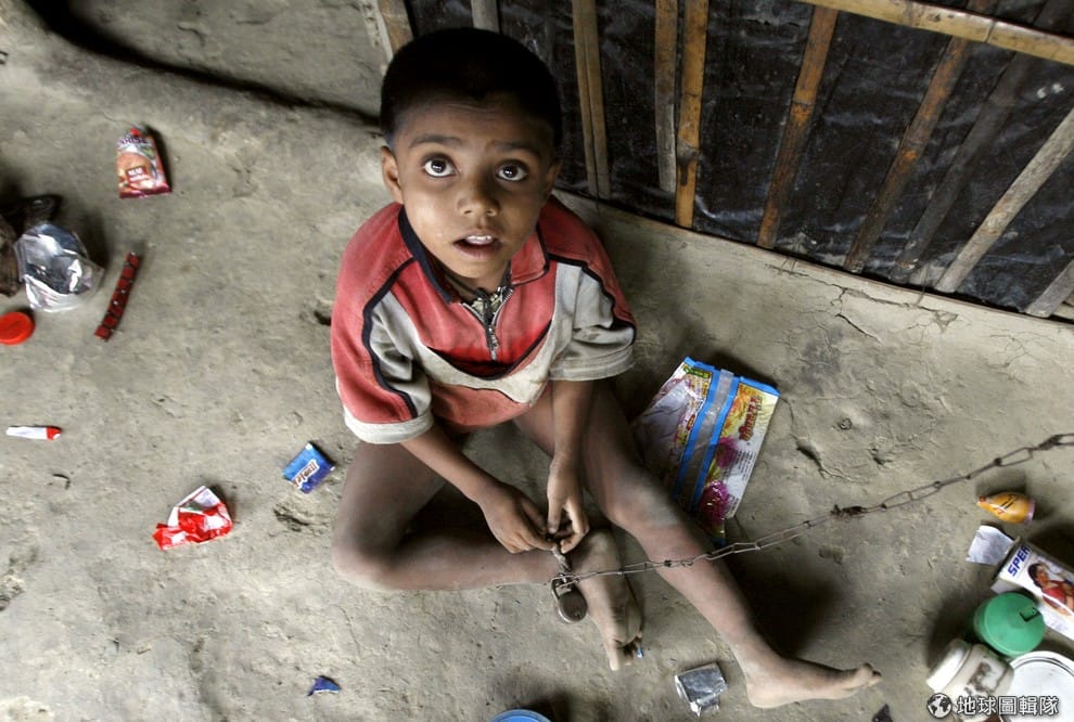 一名罹患精神疾病的印度小男孩,被用鐵鍊拴在小棚屋中。根據近日一份報告,印度精神病患者比例攀升,危害人們的生命。