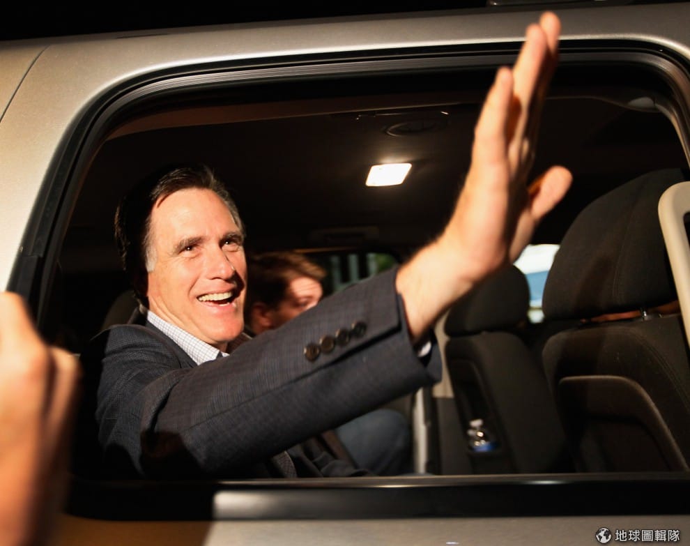 剛結束與支持群眾對話的羅姆尼,正要離開的途中跟一旁的民眾揮手致意。圖片來源: Joe Raedle/Getty Images