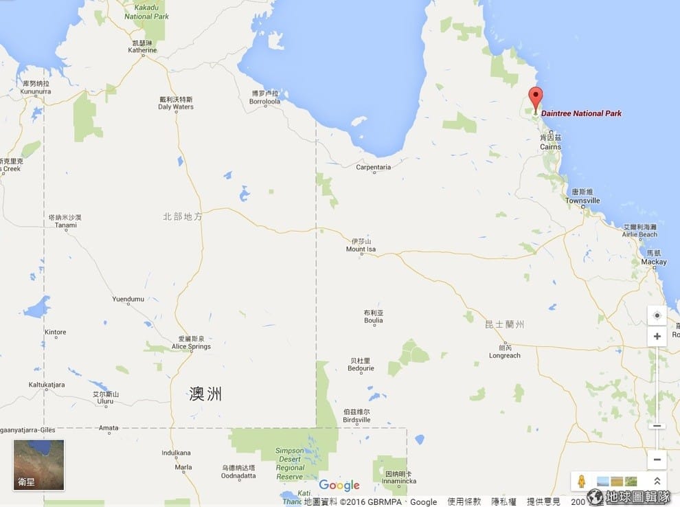 上圖紅點就是這次傳出鱷魚攻擊的黛恩樹國家公園。