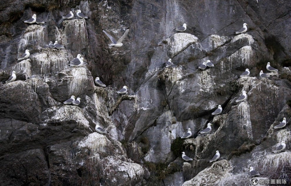路透社納沙斯雅克鎮附近的山壁上可見三趾鷗群聚。