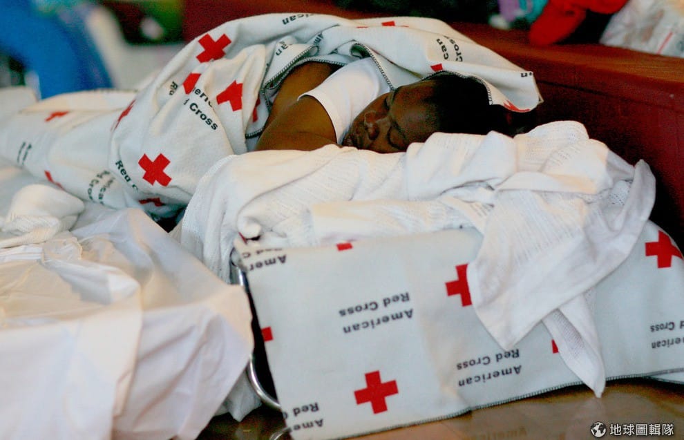 住在臨時收容所的災民。