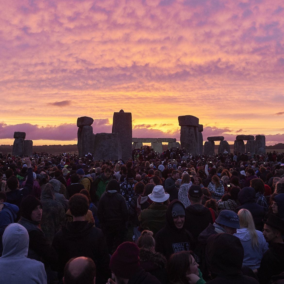 民眾為了慶祝夏至來到英國巨石陣,看著太陽緩緩上升照亮大地。