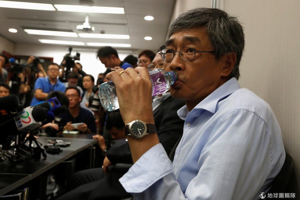 圖為失蹤了八個月返回香港的銅鑼灣書店店長林榮基,他公開舉行記者會,公布中國政府迫害的手段。