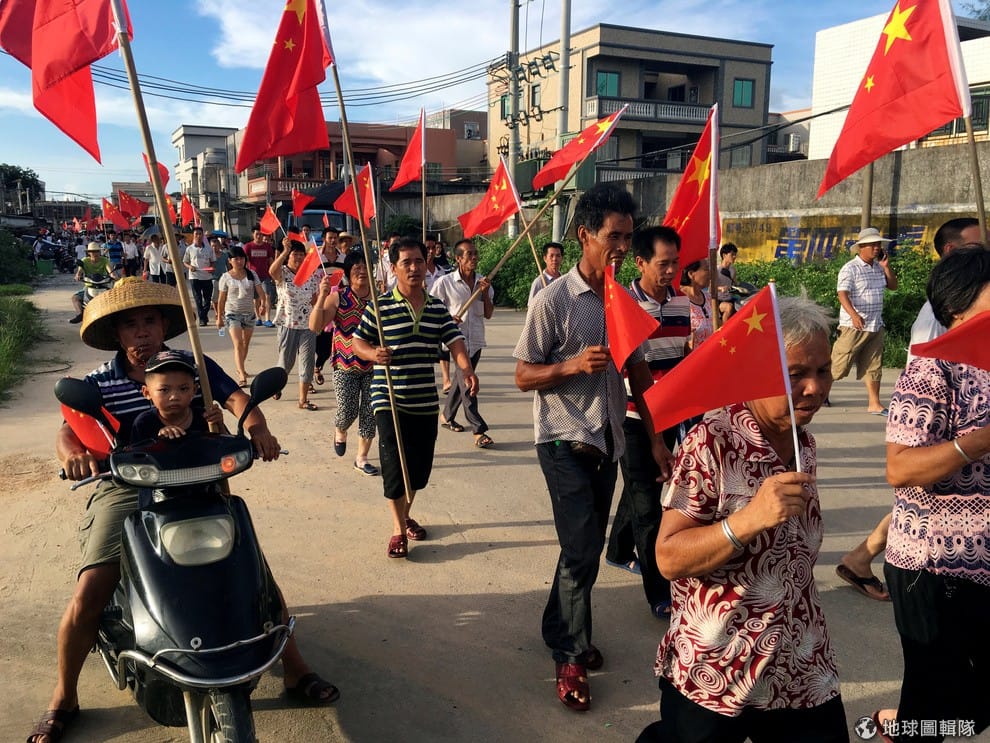 路透社看過認罪影片的村民表示,他們不相信村委書記有收賄,他們照樣在 21日拿著中國國旗上街抗議。