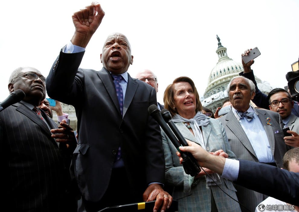 發動靜坐抗議的美國民主黨眾議員路易斯,帶領眾人步出國會,他說戰爭還沒結束,他還會再回來。