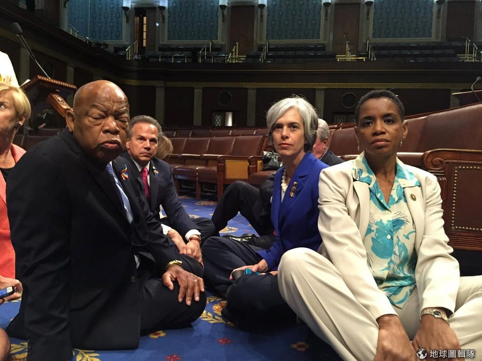 在美國,國會議員靜坐抗議非常罕見,這也凸顯出槍枝管制問題的嚴重性。