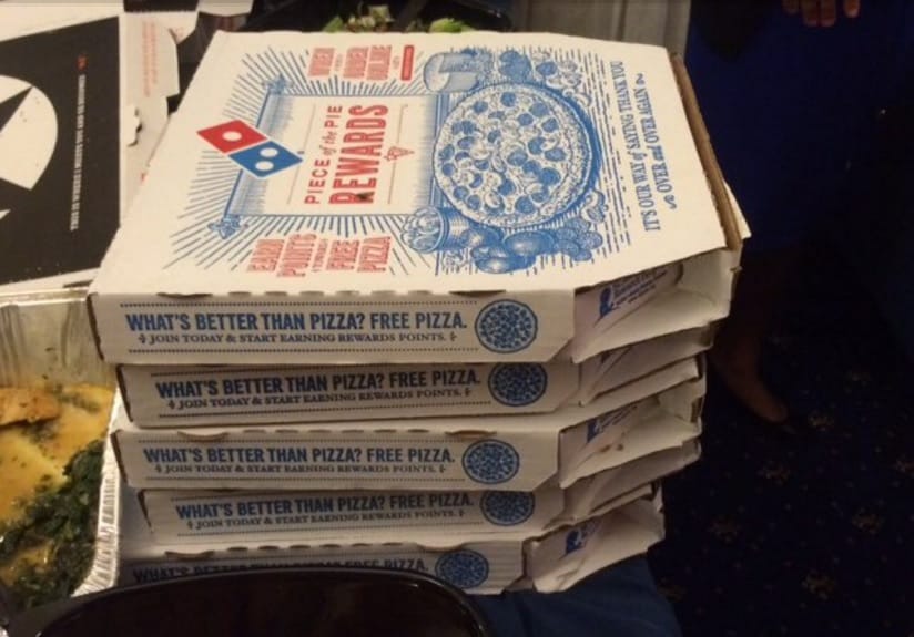 路透社美國加州眾議員趙美心在Twitter上和大家分享,加州支持者送進國會的披薩。