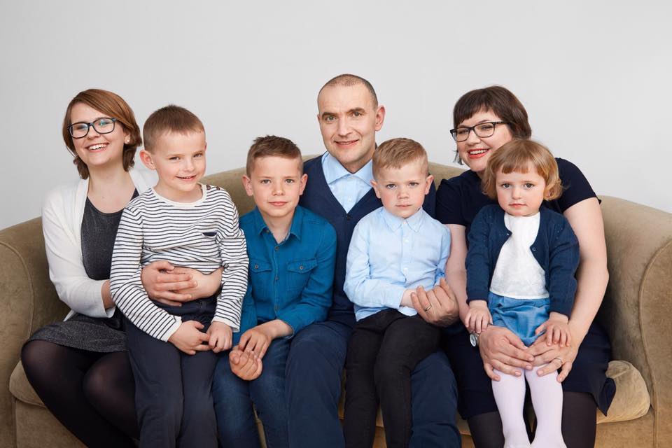 約翰尼森與太太里德(後排右)有四名孩子,與前妻有一位女兒。