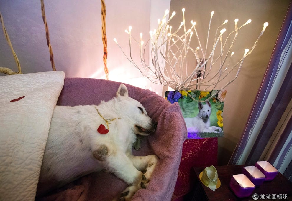 路透社「奇哥」被安放在籃子中,蜷縮的小腳上擺著花,告別式結束後就會送進焚化廠。德提美曼女士受訪時談到,她會將奇哥的骨灰放在身旁,讓牠能繼續陪伴她下去。