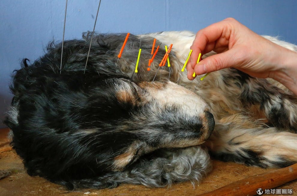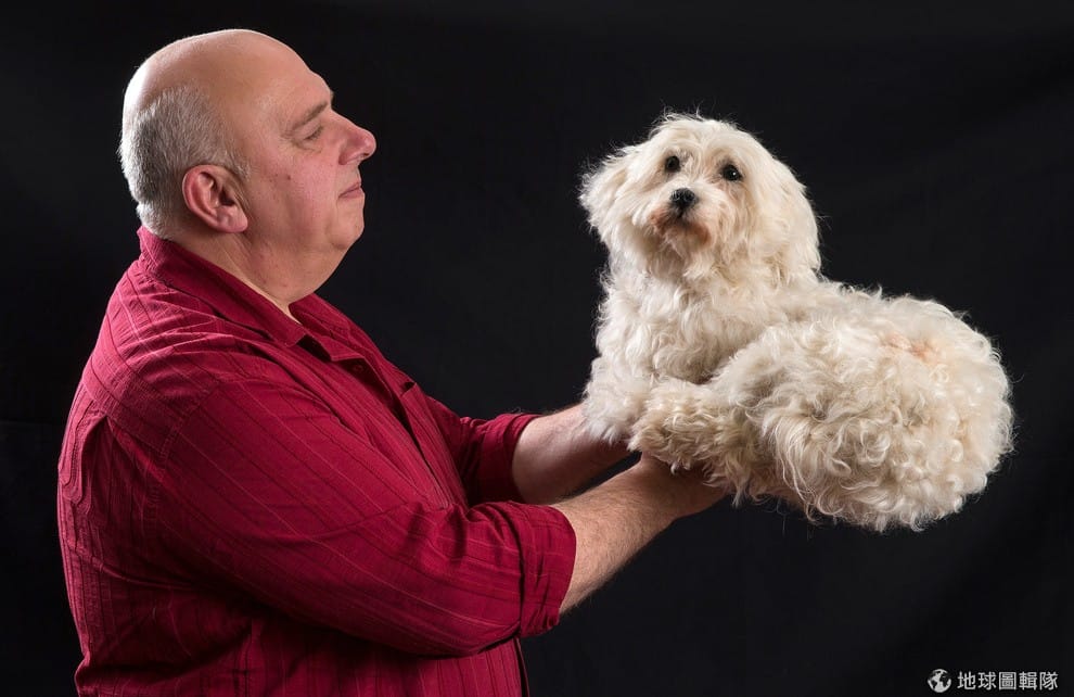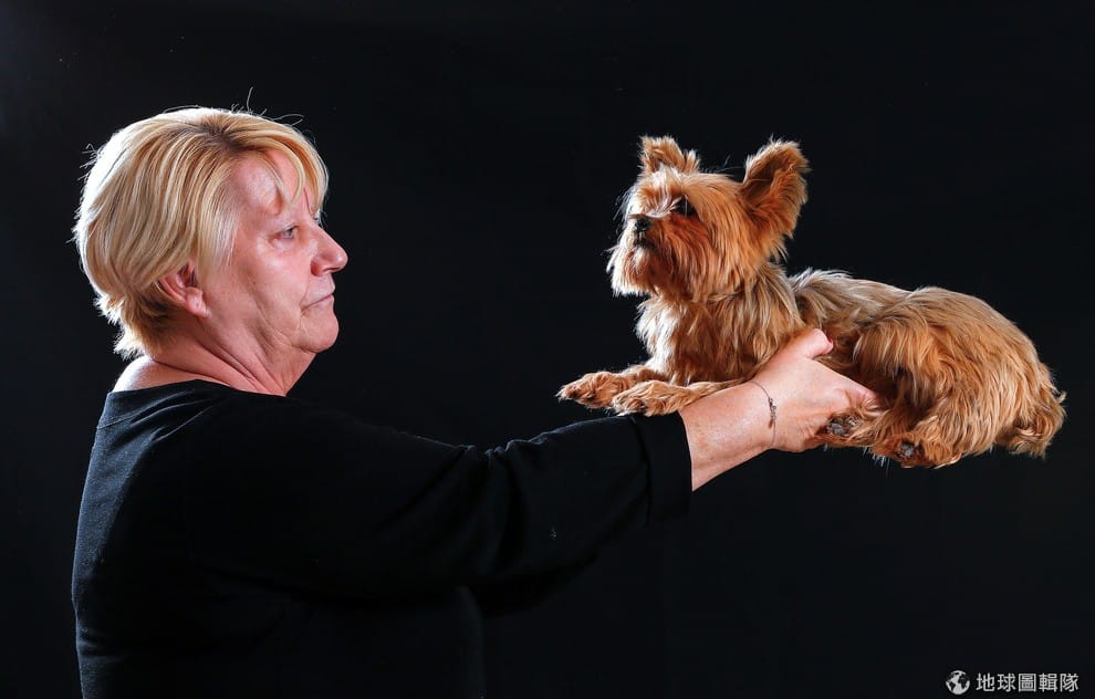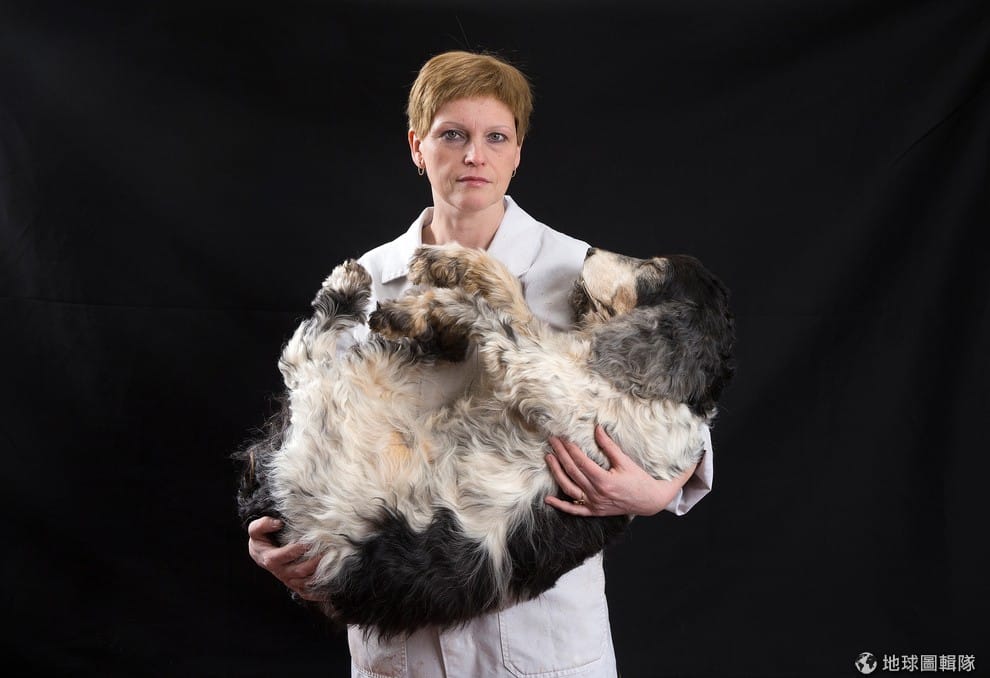 在「動物變」擔任標本師的維特朗珍(Cathy Vertongen)抱著填充完成的狗接受拍照。