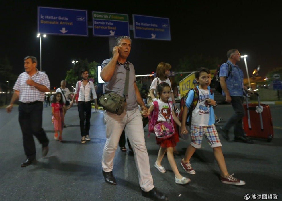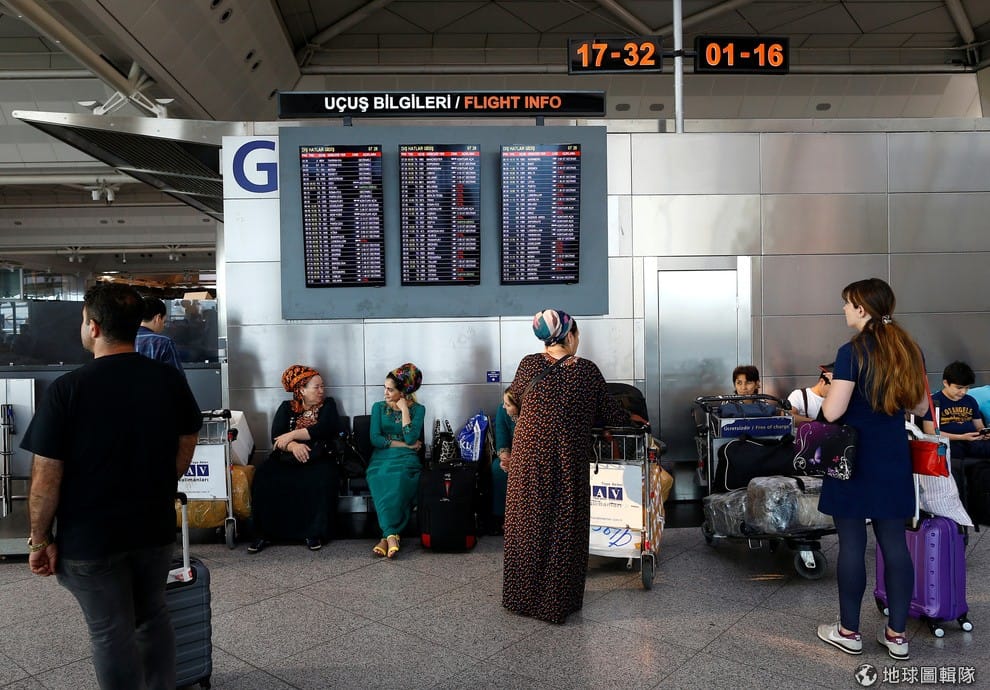 民眾在阿塔圖克國際機場內等候進一步消息。該機場在全球最忙碌機場排行第 11名,是當地最國際化且人潮川流不息的地方。