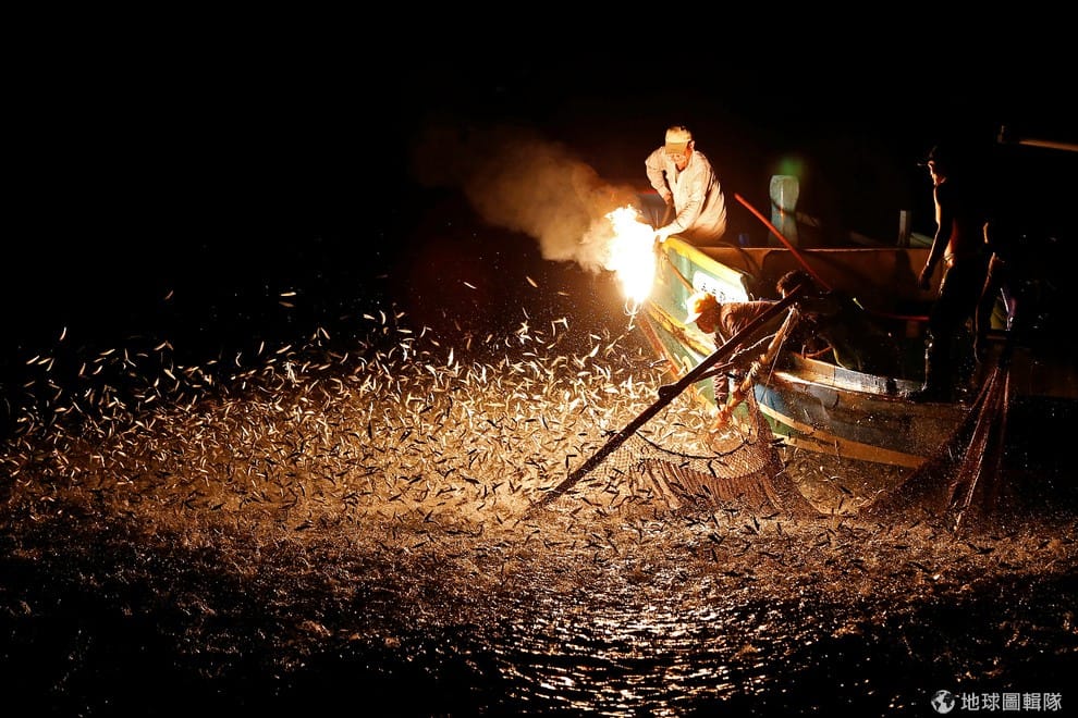 《路透社》攝影記者走訪金山,訪問到了仍「堅持古法」捕魚的漁夫們,這擁有百年歷史的捕魚技術「蹦火仔」,在全盛時期可見 300艘漁船齊力在海面上用焰火吸引魚群,然而數十年過去,至今僅剩 3艘漁船仍在使用這項技術。