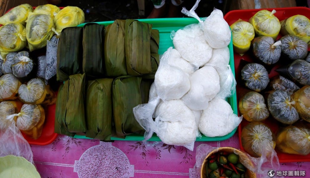 路透社攤販上的食物有:包裝魚肉、雞肉、米飯、米糕。這些食物在當地是相當常見的開齋料理。