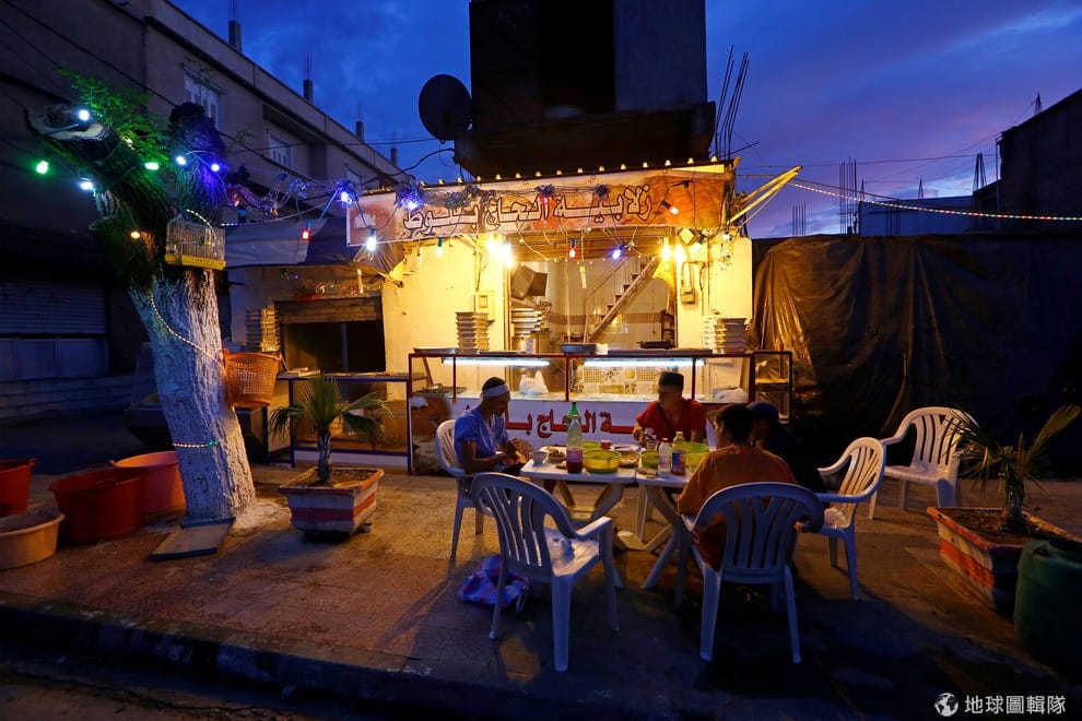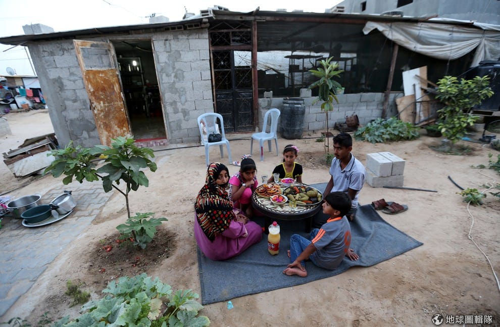 路透社加薩走廊:一家人坐在室外享受開齋飯。