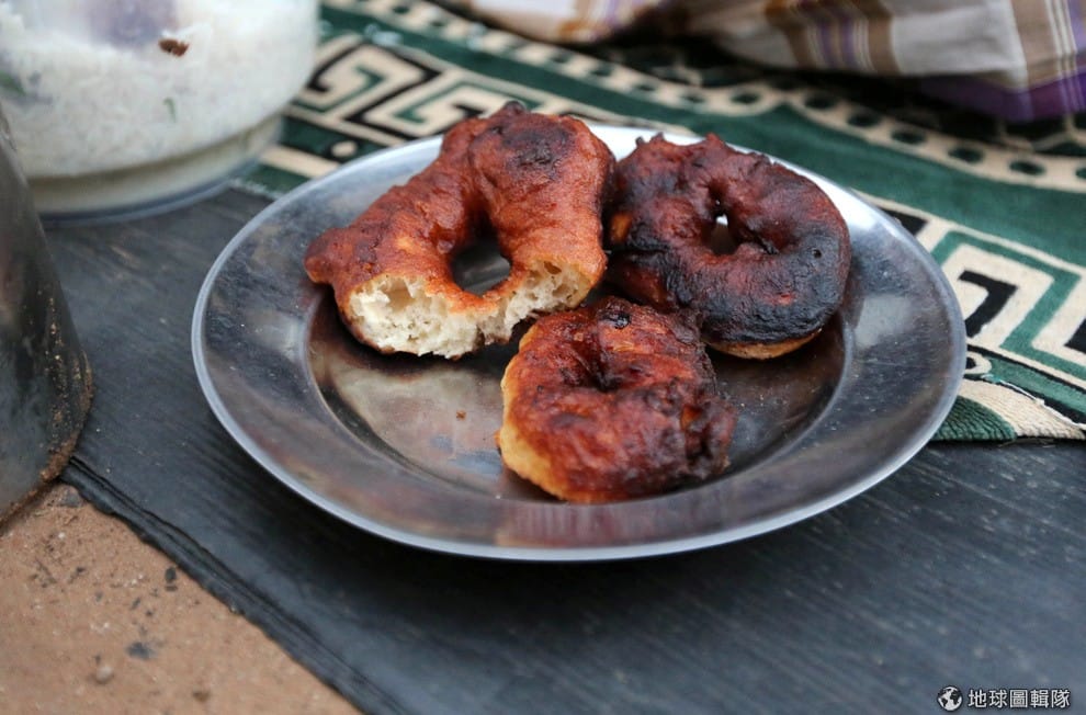 哈珊給記者看鄰人分享給他的麵包。