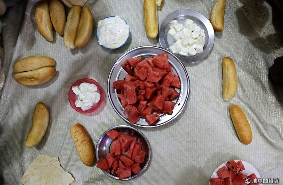 路透社敘利亞反政府士兵們吃的開齋飯由西瓜和起司等食物組成。