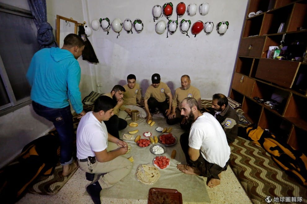 路透社敘利亞:伊德利卜省的民兵組織坐在一塊享受開齋飯。