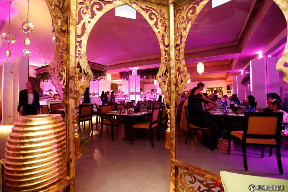 路透社巴林:麗池卡爾頓飯店內,旅客坐在「齋戒月開齋飯餐廳」內享受美食。