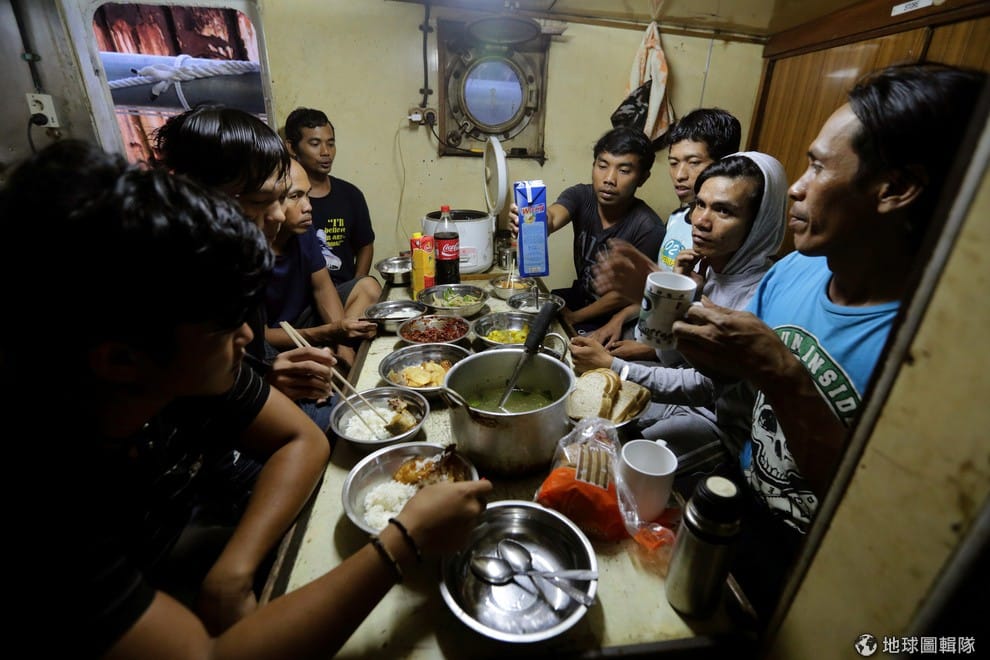 路透社蘇利南:蘇利南和印尼漁民們正在「日新丸 7號」上共享開齋飯。