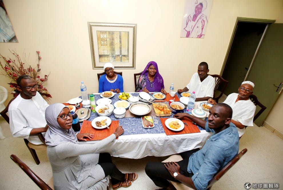 路透社象牙海岸:22歲的迪安妮(Yasmine Diane,藍衣)和家人坐在一塊享受開齋餐點。