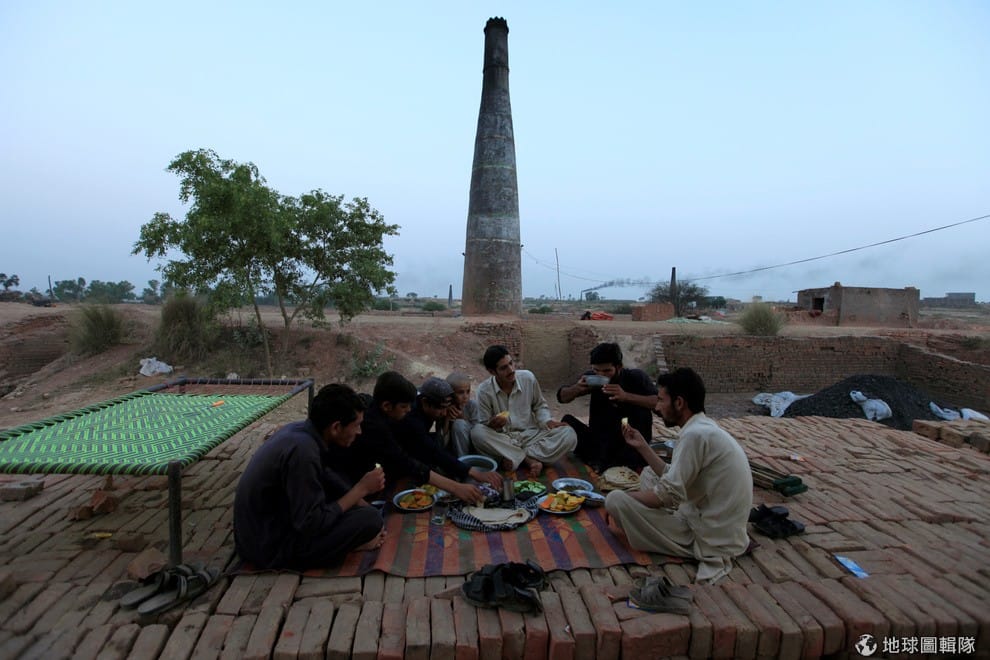 路透社巴基斯坦:27歲的穆罕默德(Mohammed)與其他磚頭工廠的工人們享用開齋飯。