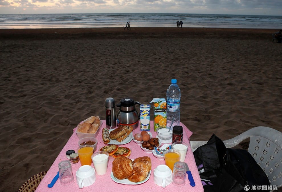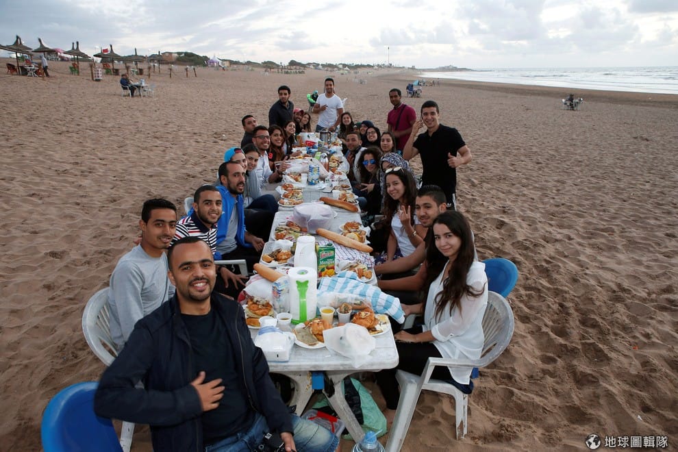 路透社摩洛哥:卡薩布蘭加的海邊,人們趁著天光正好外出享用開齋飯。