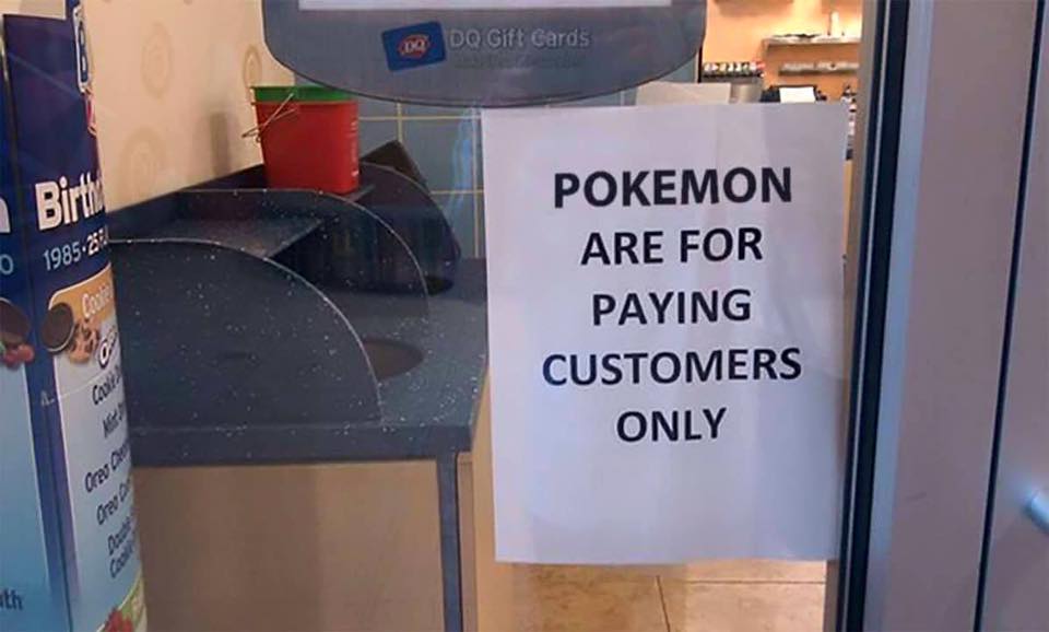 網友Screen Team除了有不少玩家為了捕捉精靈寶可夢踏入警局,有咖啡館也打趣地貼出告示,上面寫道:「只有付費的客人可以得到精靈寶可夢。」
