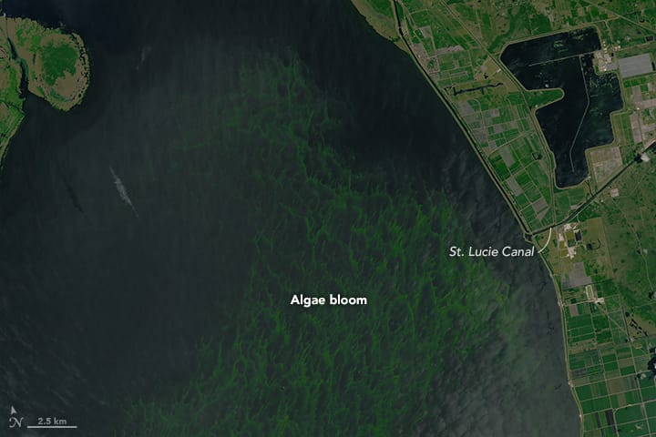 事實上,毒藻現象在佛州不是第一次出現,藻類會過度激增主要是因為人類過度使用肥料並排入河湖等水體中所致,而佛州過去的藍綠藻多發生在當地的歐基求碧湖(Lake Okeechobee)中,這裡因為大量的農藥、排泄物以及動物飼料等出現優養化現象,近日因為堤防老舊造成湖中藍綠藻開始往海岸蔓延。