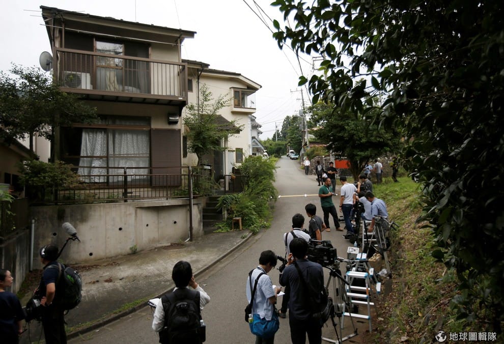 路透社記者聚集在作案嫌犯植松聖的住家附近。