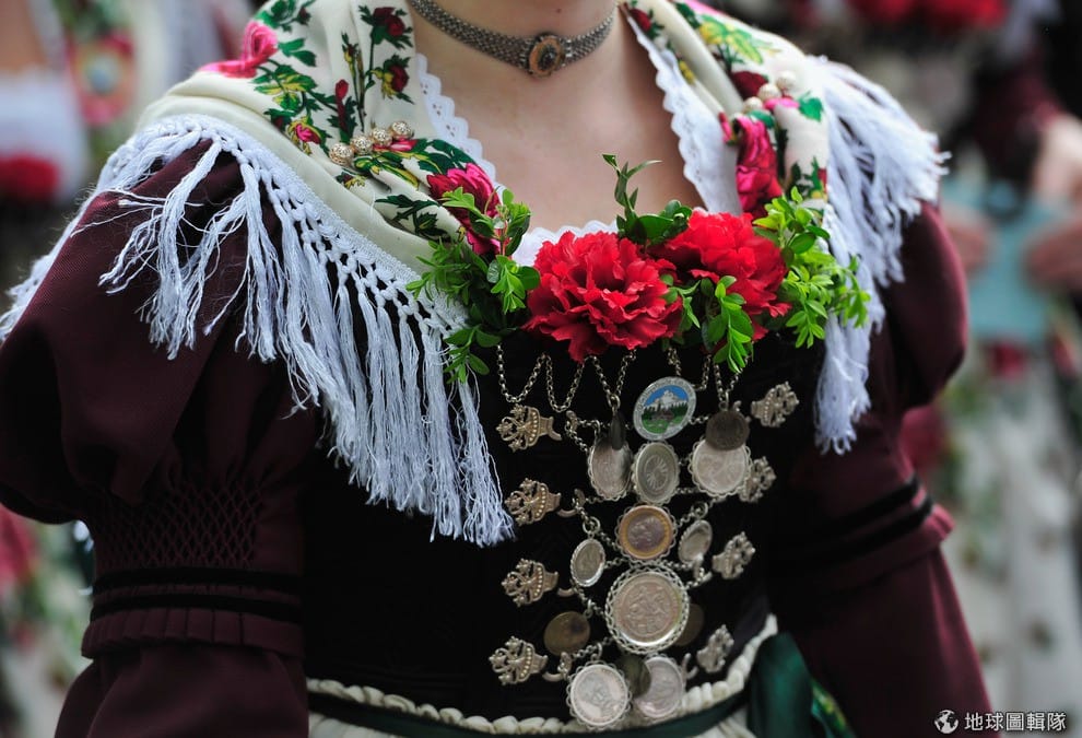 耶穌升天日這天,居民們全換上傳統服飾,一同歡慶齊唱!Lennart Preiss/Getty Images
